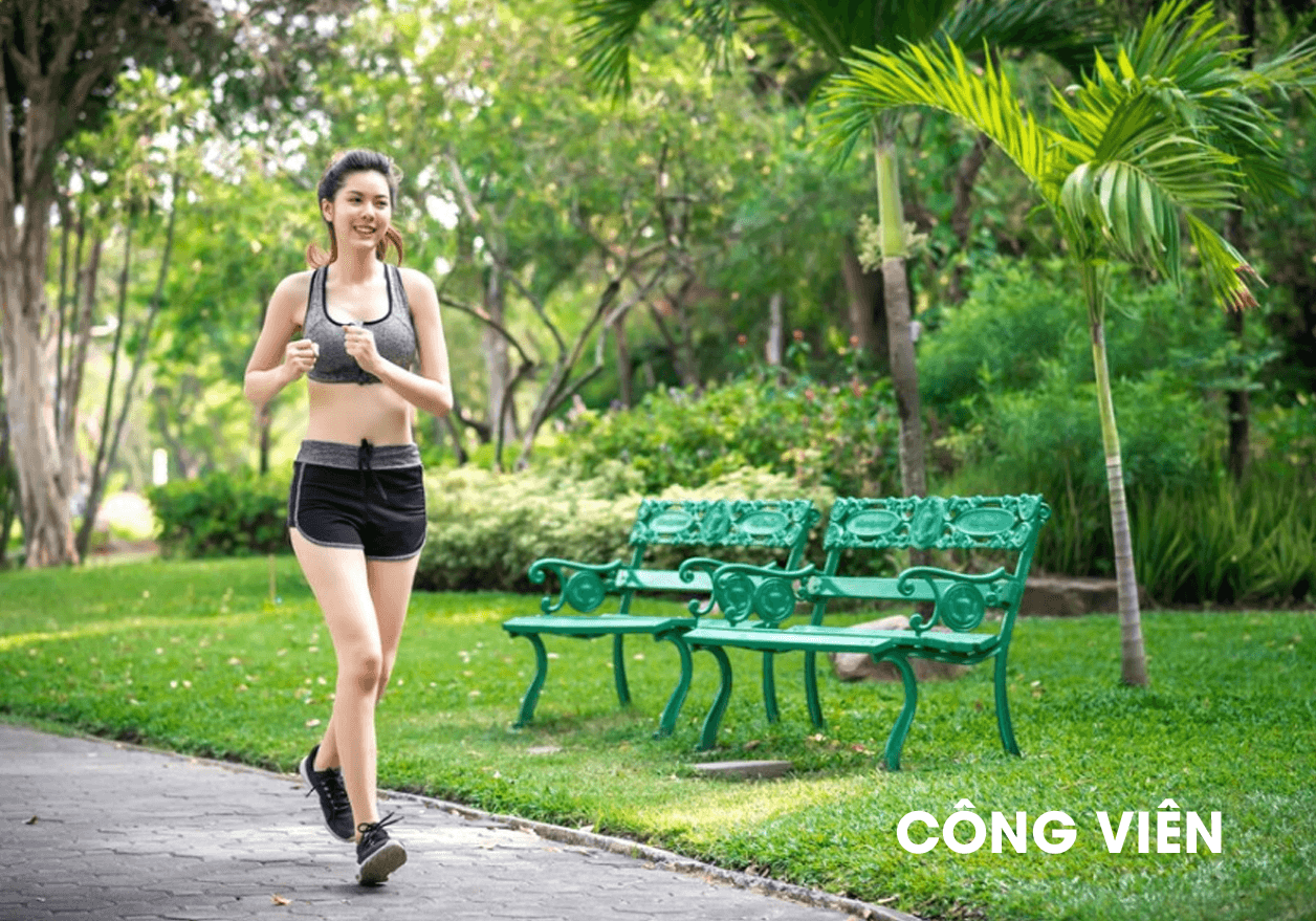 Mảng xanh được bố trí rộng khắp trong nội khu nhằm đem đến không gian cảnh quan và không gian thư giãn cho cư dân như:Công viên cây xanh, vườn thư giãn, lối dạo bộ, hệ thống hồ bơi trên cao và dưới đất, khu thể thao, sân bóng rổ