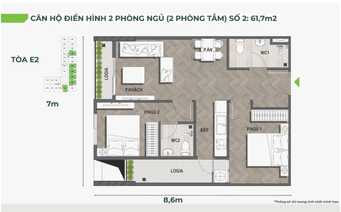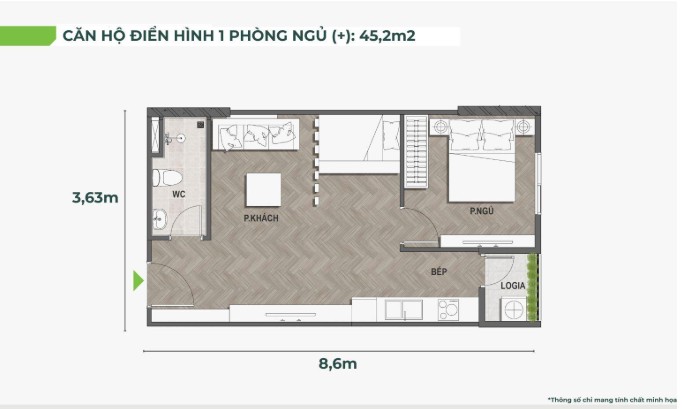 Nhà ở xã hội: 1.032 căn (31,2 – 63,3 m²)